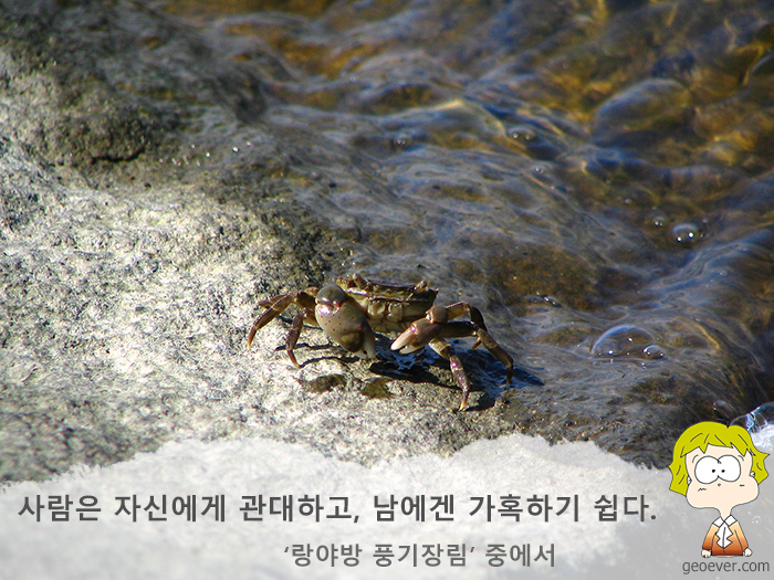 사람은 자신에게 관대하고, 남에겐 가혹하기 쉽다.