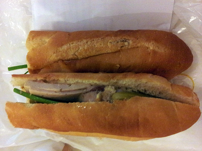 바게트 빵을 이등분한 후에... 다시 길게 반으로 갈라서 그 안에 각종 채소와 햄 등을 넣고, 소스를 바르는 비교적 간단하고 저렴하기까지 한 현지 음식인데, 맛도 나쁘지 않다.