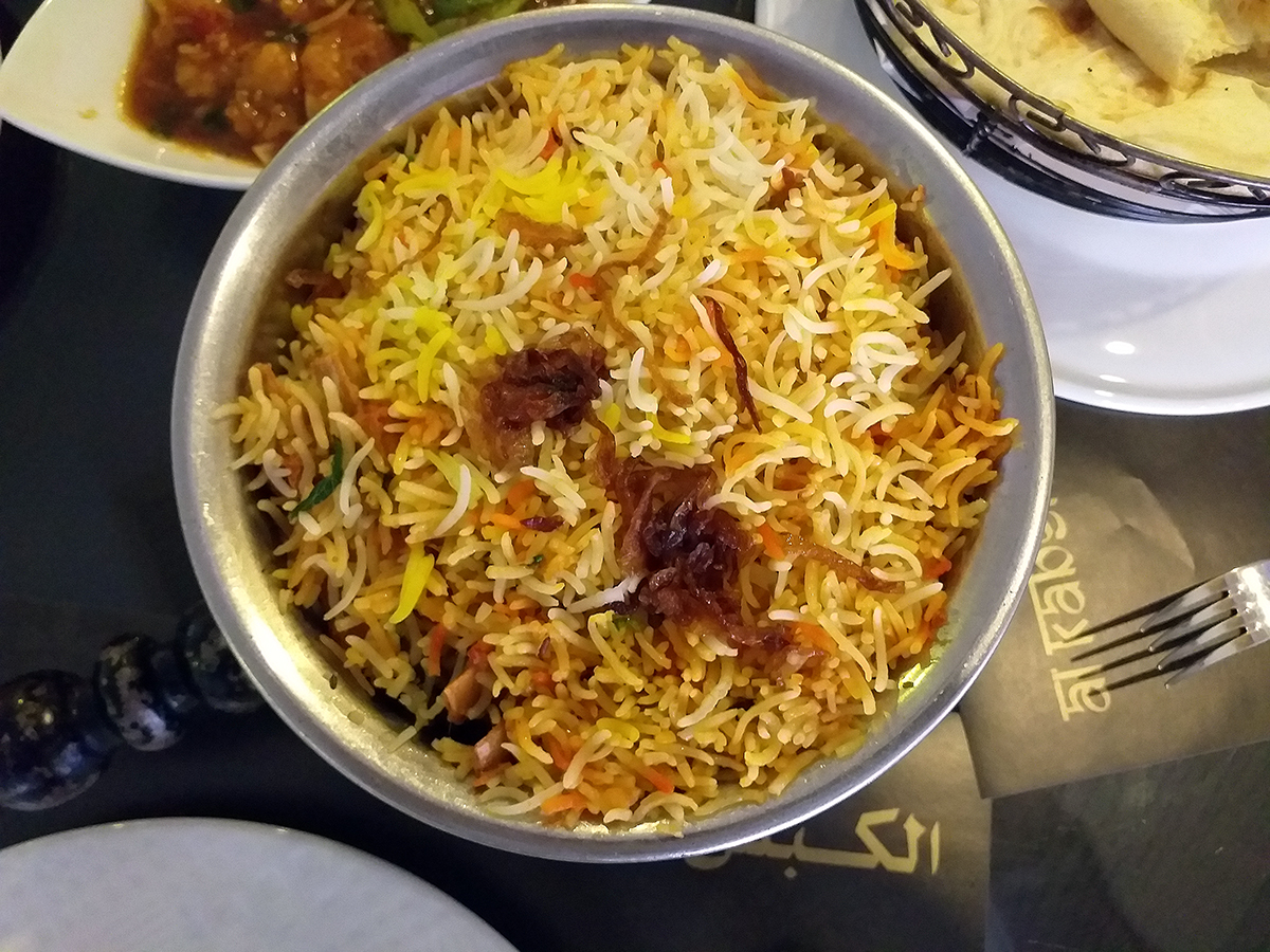 다행히 이곳에서 먹은 Mutton Biryani는 내 입맛과 취향에 잘 맞았고, 나는 다음에 한 번도 똑같은 음식을 주문해서 먹었다. Al Kabsh에서는 특이하게 기름 연료 같은 것을 밑에 넣어서 Mutton Biryani를 데우면서 내온다. 그리고, 밑에 연료가 다 탈 때쯤 종업원이 와서 그릇에 담긴 음식을 접시에 뒤집어 옮겨 준다.